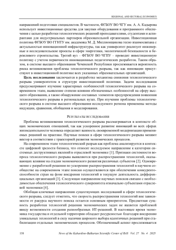 Ключевые фразы: технологическое развитие, университет, высшее образование, инновация, ОБРАЗОВАТЕЛЬНАЯ ПРОГРАММА, РЕГИОНАЛЬНАЯ ЭКОНОМИКА, КВАЛИФИЦИРОВАННЫЕ КАДРЫ, ЭКОСИСТЕМА, технологический разрыв, механизм