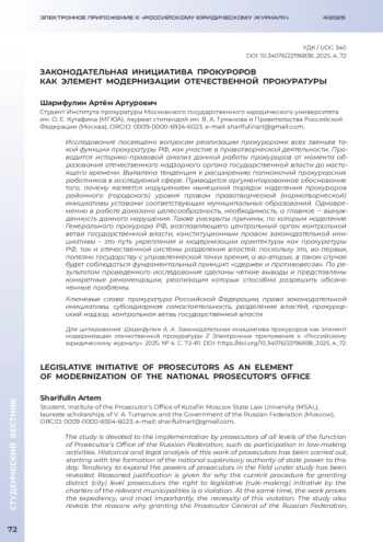 15. Шарифулин А. А. Прокуратура Российской Федерации: о некоторых особенностях правового положения // Евразийский юридический журнал. 2024. № 1. С. 75-79. DOI: 10.46320/2073-45062023-1-188-75-79 EDN: SILQTT