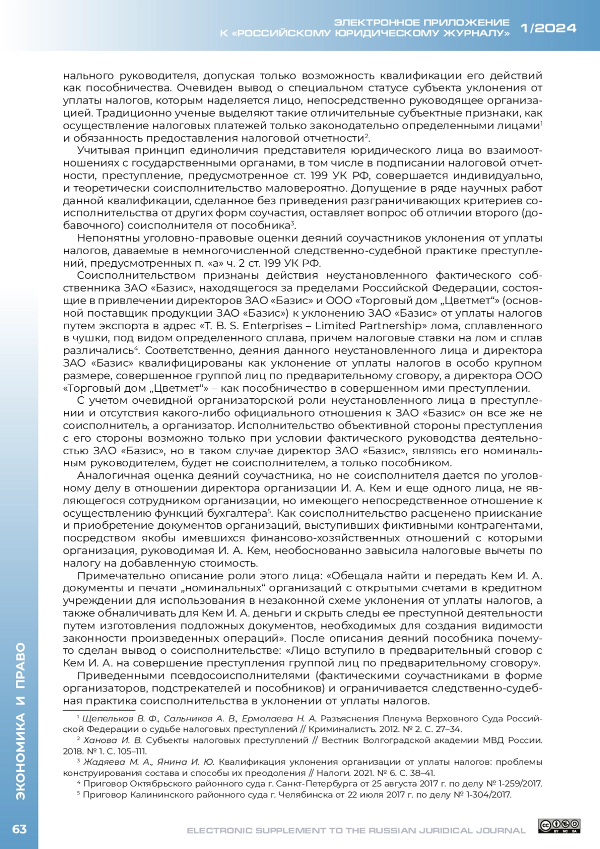 1. Жадяева М. А., Янина И. Ю. Квалификация уклонения организации от уплаты налогов: проблемы конструирования состава и способы их преодоления // Налоги. 2021. № 6. С. 38-41. EDN: HWCCRM
