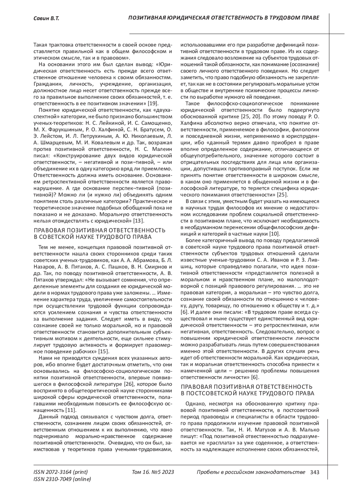 16. Савин В. Т. Проблемы концепции трудоправовой ответственности сторон трудового договора // Актуальные проблемы российского права. 2014. №7 (44) июль. С. 1397. EDN: TFWVWZ