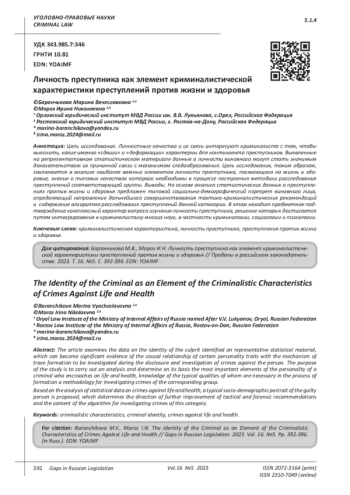 Steshich E.S. Criminology of homicide / ed. by D.A. Koretsky. M.: Yurlitinform, 2019.