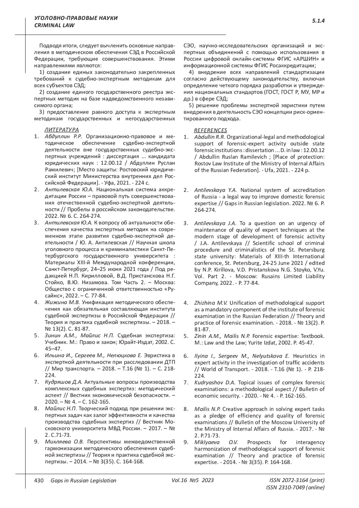 2. Антилевская Ю.А. Национальная система аккредитации России - правовой путь совершенствования отечественной судебно-экспертной деятельности // Пробелы в российском законодательстве. 2022. № 6. С. 264-274. EDN: ZLVAFP