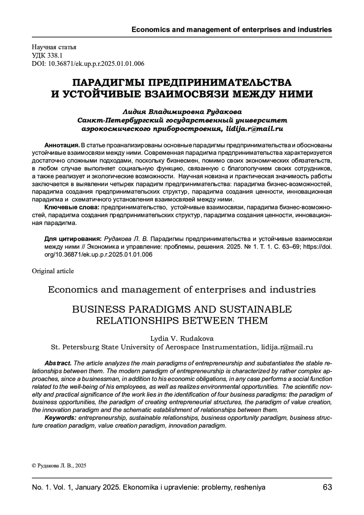 8. Рудакова Л. В. Парадигмы развития современного предпринимательства // Научный журнал “Вестник Академии”. М.: ИД “Научная библиотека”. - 2023. - № 4-(78). С. 104- 110.