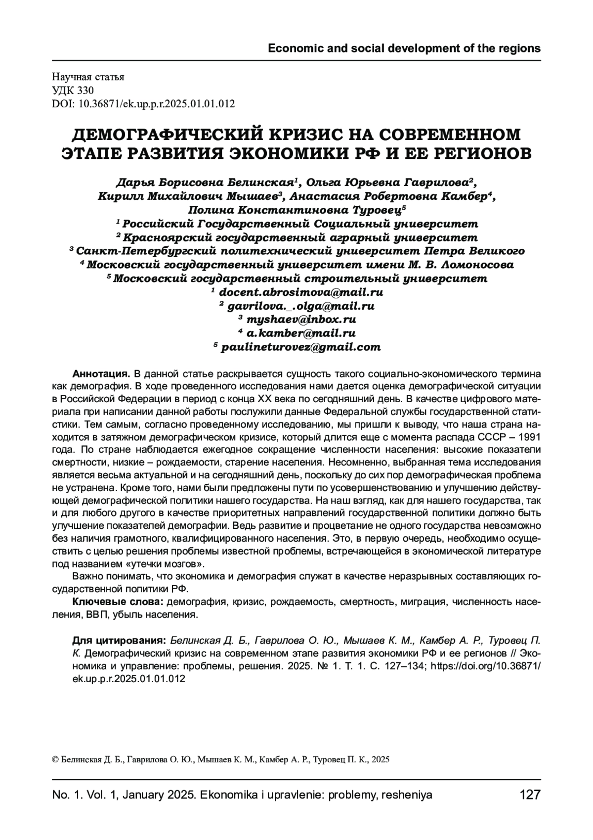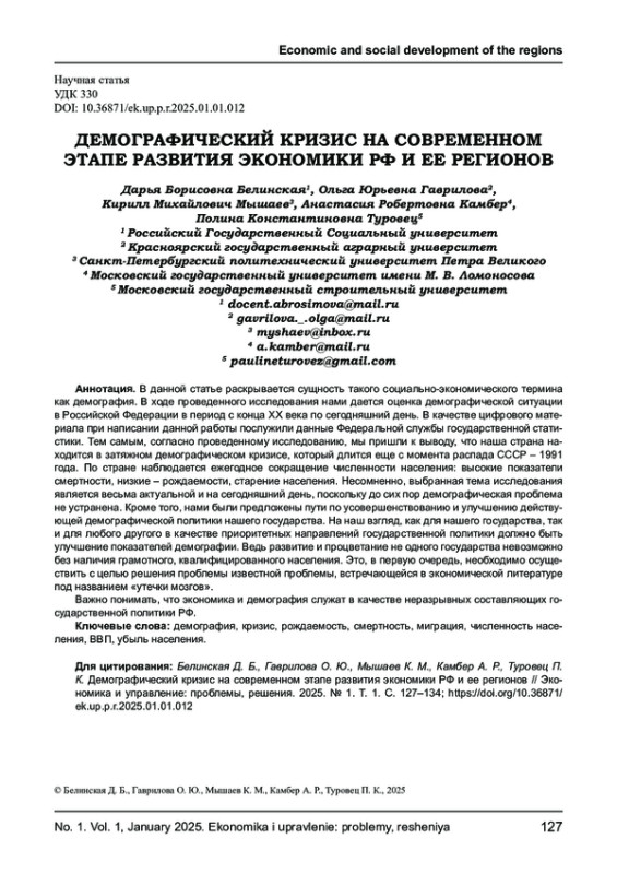 Введение. Несомненно, на современном этапе развития общества и экономики значимость демографии ежедневно возрастает.