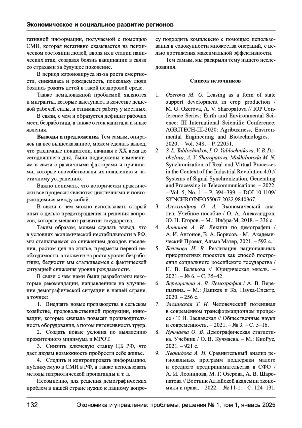 1. Ozerova M. G. Leasing as a form of state support development in crop production / M. G. Ozerova, A. V. Sharopatova // IOP Conference Series: Earth and Environmental Science: III International Scientific Conference: AGRITECH-III-2020: Agribusiness, Environmental Engineering and Biotechnologies. - 2020. - Vol. 548. - P. 22051. EDN: UTOVNM