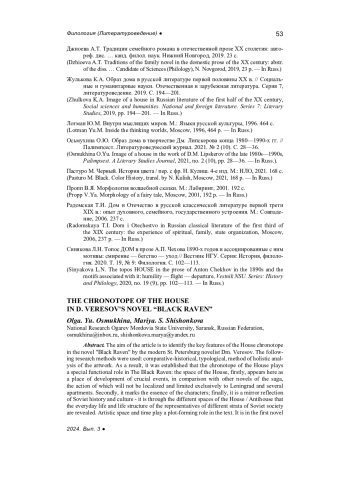 3. Джиоева А.Т. Традиции семейного романа в отечественной прозе ХХ столетия: автореф. дис. … канд. филол. наук. Нижний Новгород, 2019. 23 с. EDN: RBVTZS