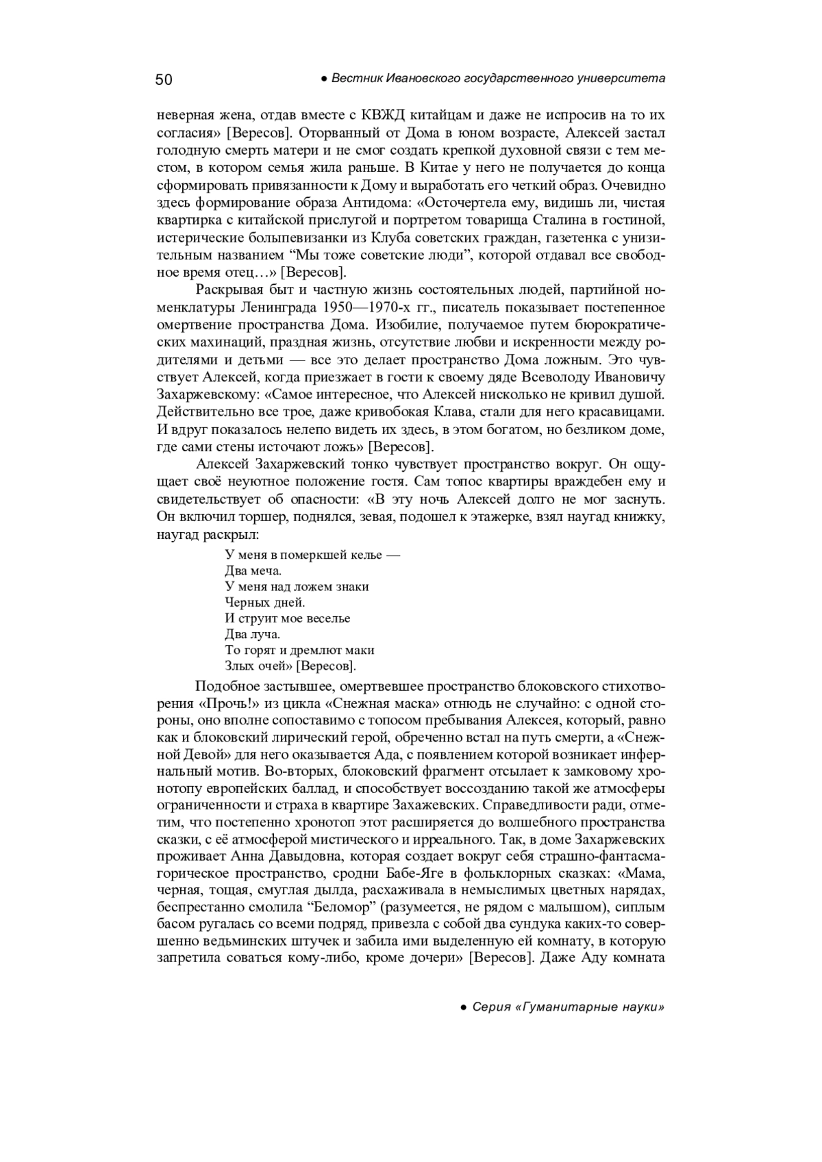 Zhulkova K.A. Image of a house in Russian literature of the first half of the XX century, Social sciences and humanities. National and foreign literature. Series 7: Literary Studies, 2019, pp. 194-201. - In Russ.