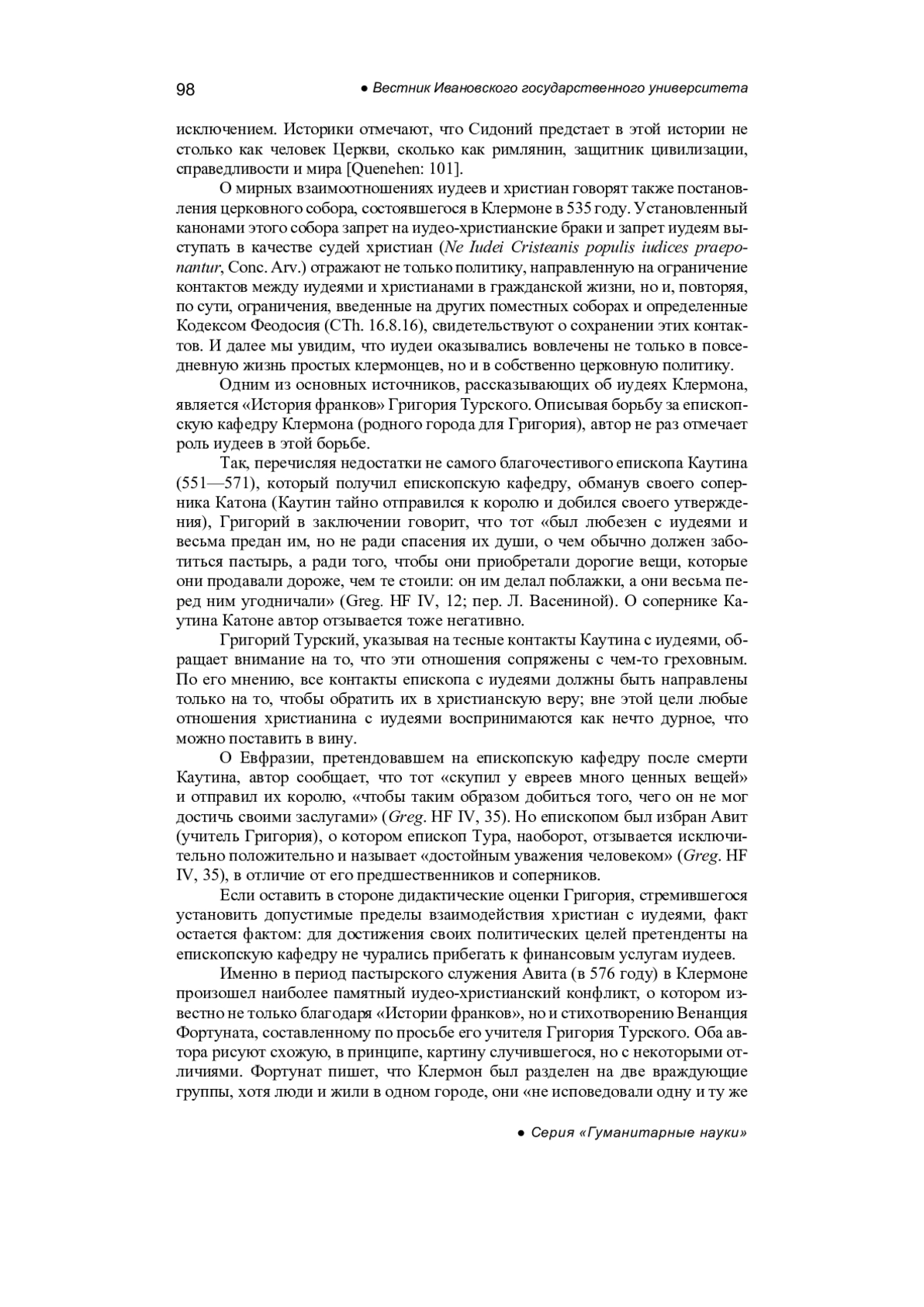 19. Quenehen M. Les Juifs de l’évêque. De l’usage des Juifs dans l’œuvre de Grégoire de Tours, Archives Juives, 2010, vol. 1 (43), pp. 96-113.