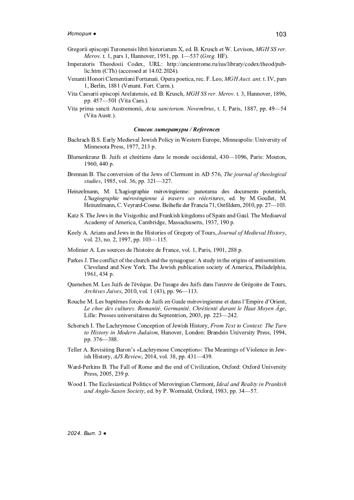 13. Brennan B. The conversion of the Jews of Clermont in AD 576, The journal of theological studies, 1985, vol. 36, pp. 321-327.