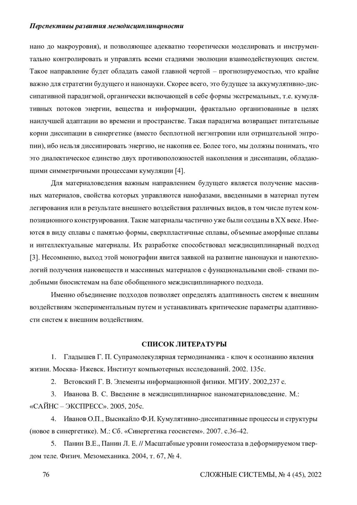 5. Панин В.Е., Панин Л. Е. // Масштабные уровни гомеостаза в деформируемом твердом теле. Физич. Мезомеханика. 2004, т. 67, № 4. EDN: IKZZMJ