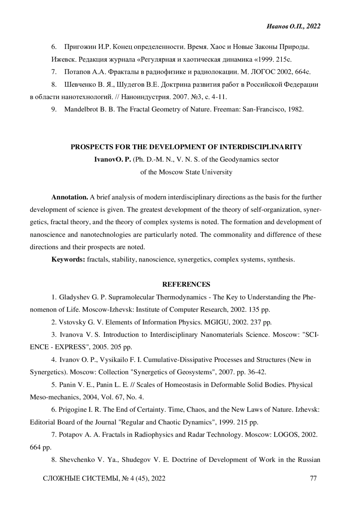 12. Ivanova V. S.Introduction to Interdisciplinary Nanomaterials Science. Moscow: “SCI- ENCE - EXPRESS”, 2005. 205 pp.