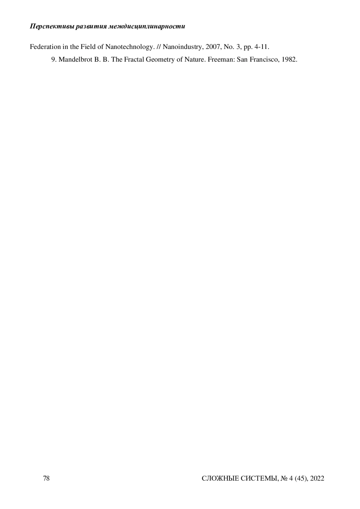 9. Mandelbrot B. B. The Fractal Geometry of Nature. Freeman: San-Francisco, 1982.