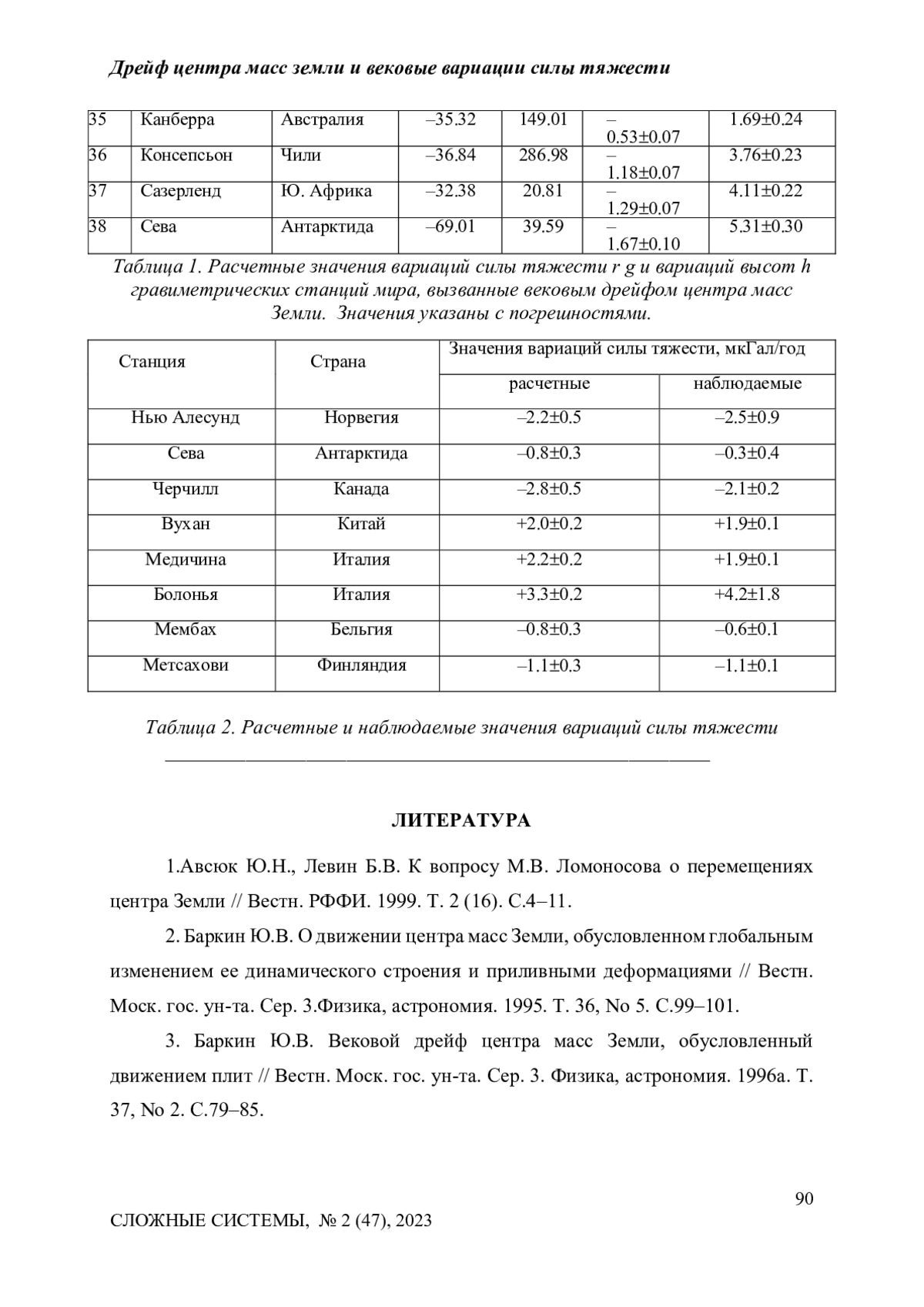 Статья: ДРЕЙФ ЦЕНТРА МАСС ЗЕМЛИ И ВЕКОВЫЕ ВАРИАЦИИ СИЛЫ ТЯЖЕСТИ (2023)