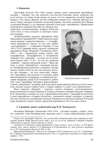 Ключевые фразы: в и ламанский, п н савицкий, средний мир, греко-славянский мир, ЕВРАЗИЯ, ПАНСЛАВИЗМ, евразийство, структурализм