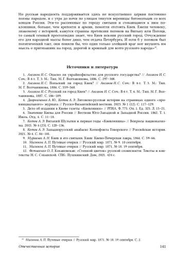 3. Аксаков И. С. Русский ли город Киев? // Аксаков И. С. Соч.: В 6 т. Т. 6. М.: Тип. М. Г. Волчанинова, 1887. С. 186-189.