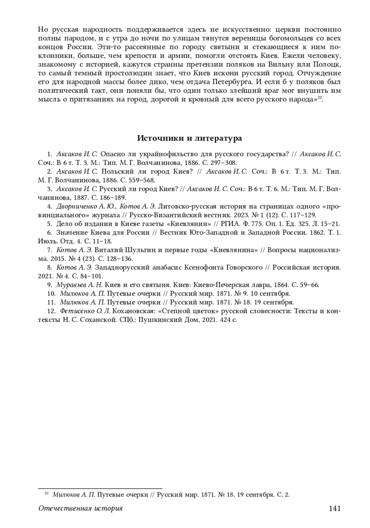 2. Аксаков И. С. Польский ли город Киев? // Аксаков И. С. Соч.: В 6 т. Т. 3. М.: Тип. М. Г. Волчанинова, 1886. С. 559-568.