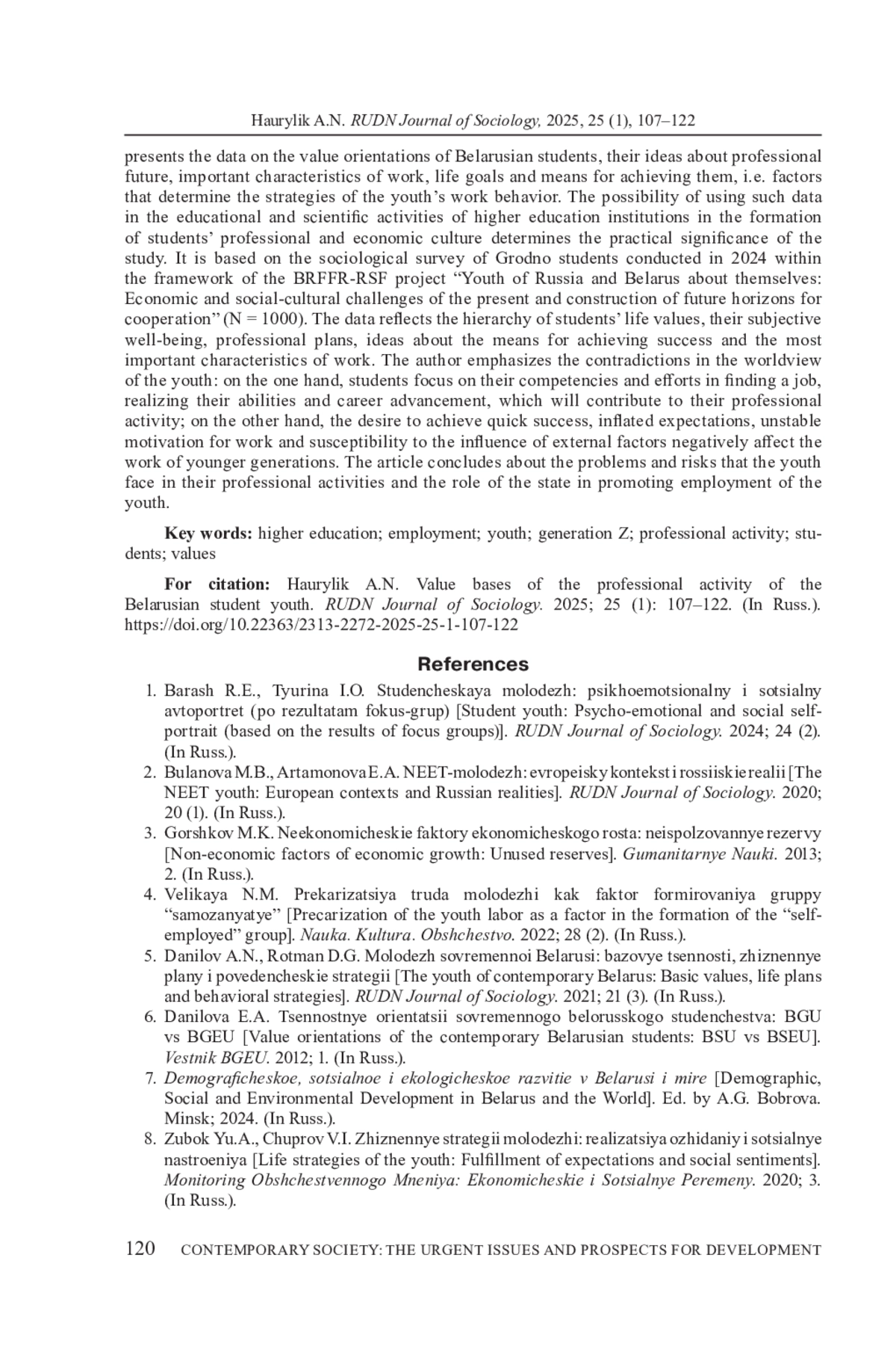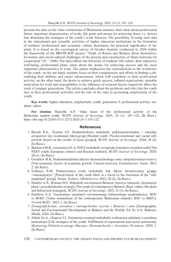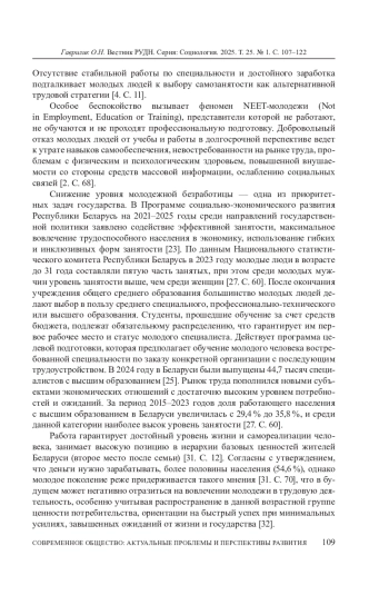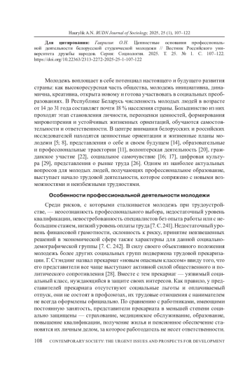 ГАВРИЛИК О. Н. ЦЕННОСТНЫЕ ОСНОВАНИЯ ПРОФЕССИОНАЛЬНОЙ ДЕЯТЕЛЬНОСТИ БЕЛОРУССКОЙ СТУДЕНЧЕСКОЙ МОЛОДЕЖИ // ВЕСТНИК РОССИЙСКОГО УНИВЕРСИТЕТА ДРУЖБЫ НАРОДОВ. СЕРИЯ: СОЦИОЛОГИЯ. 2025. Т. 25 № 1