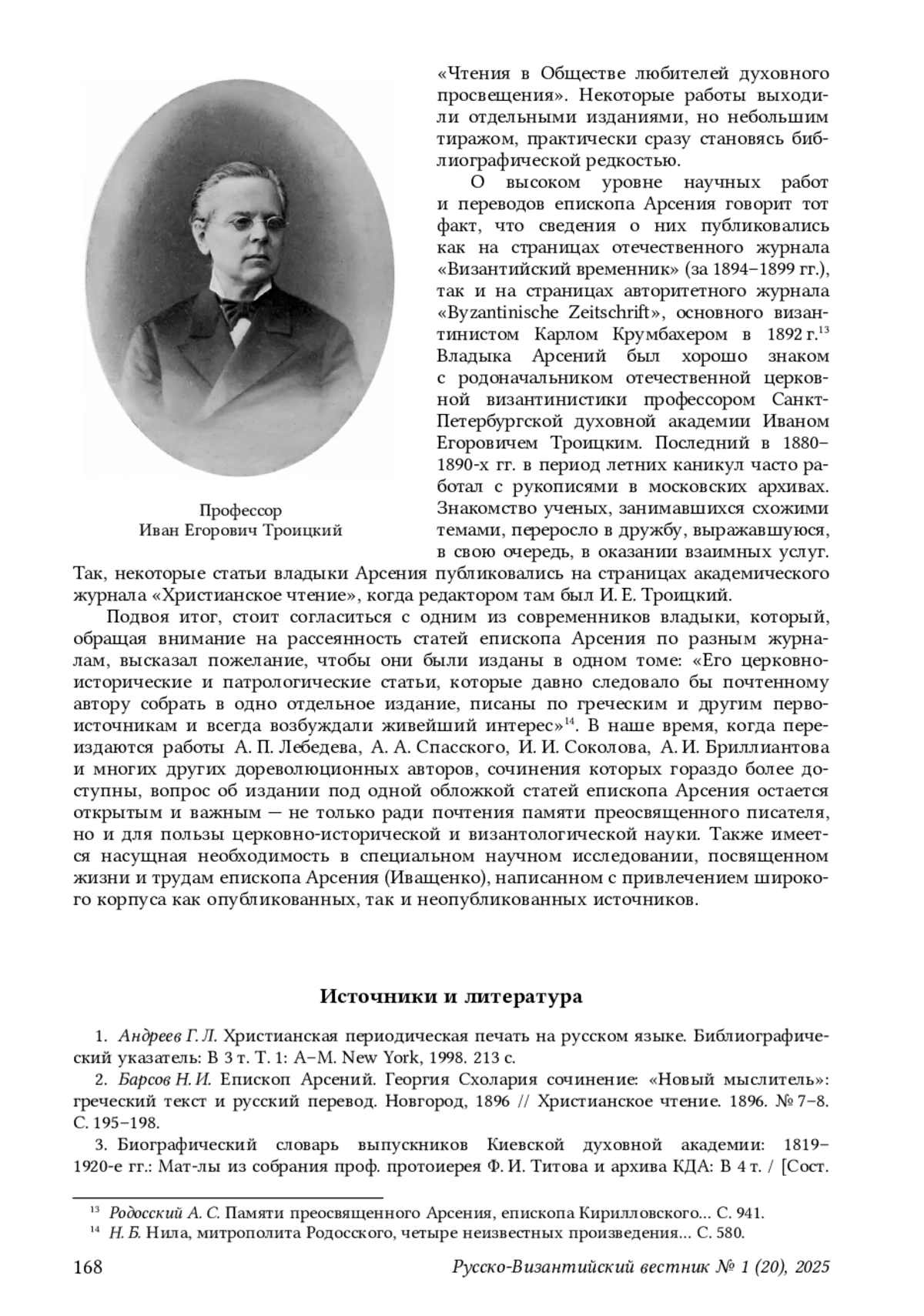 12. Спасский А. А. † Преосвященный Арсений, епископ Кирилловский, и его труды в области византологии // Византийский временник. Т. X. 1903. Вып. 3-4. С. 667-703.