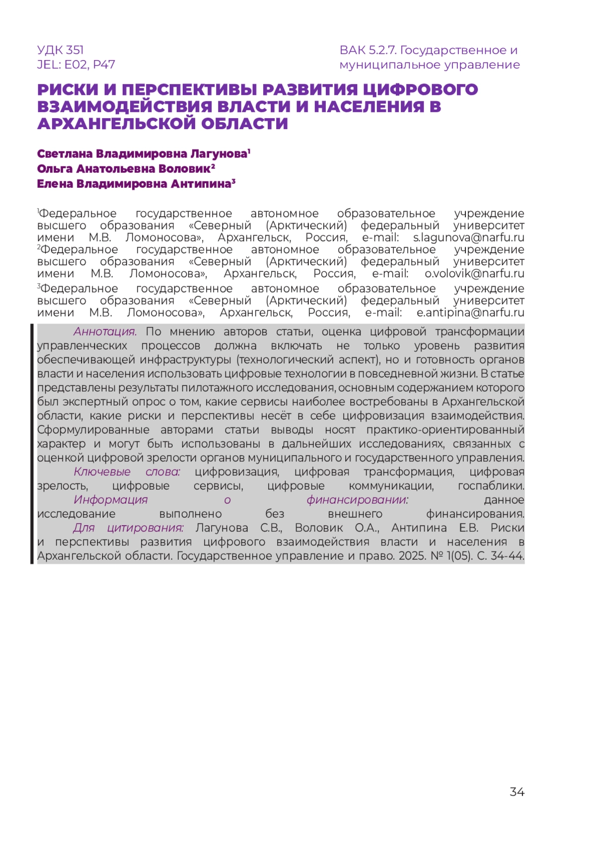 4. Южаков В.Н., Покида А.Н., Зыбуновская Н.В., Старостина А.Н. Цифровизация взаимодействия граждан и государства: оценка гражданами эффектов, рисков и перспектив // Вопросы государственного и муниципального управления. 2023. № 2. С. 33-71. URL: https://cyberleninka.ru/article/n/tsifrovizatsiya-vzaimodeystviya-grazhdan-i-gosudarstva-otsenka-grazhdanami-effektov-riskov-i-perspektiv/viewer. DOI: 10.17323/1999-5431-2023-0-2-33-73
