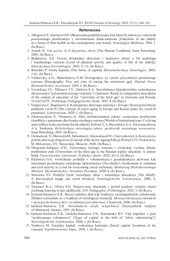 16. Ярская-Смирнова Е.Р., Ярская-Смирнова В.Н., Кононенко Р.В. Виды капиталов в поле “серебряного волонтерства” // Социологические исследования. 2024. № 3. EDN: KYDFML