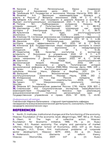 Ключевые фразы: ВНЕШНЕЭКОНОМИЧЕСКАЯ ПОЛИТИКА, взаимодействие государства и бизнеса, государственно-частное партнерство, цифровизация, экспорт, институциональное развитие, нко