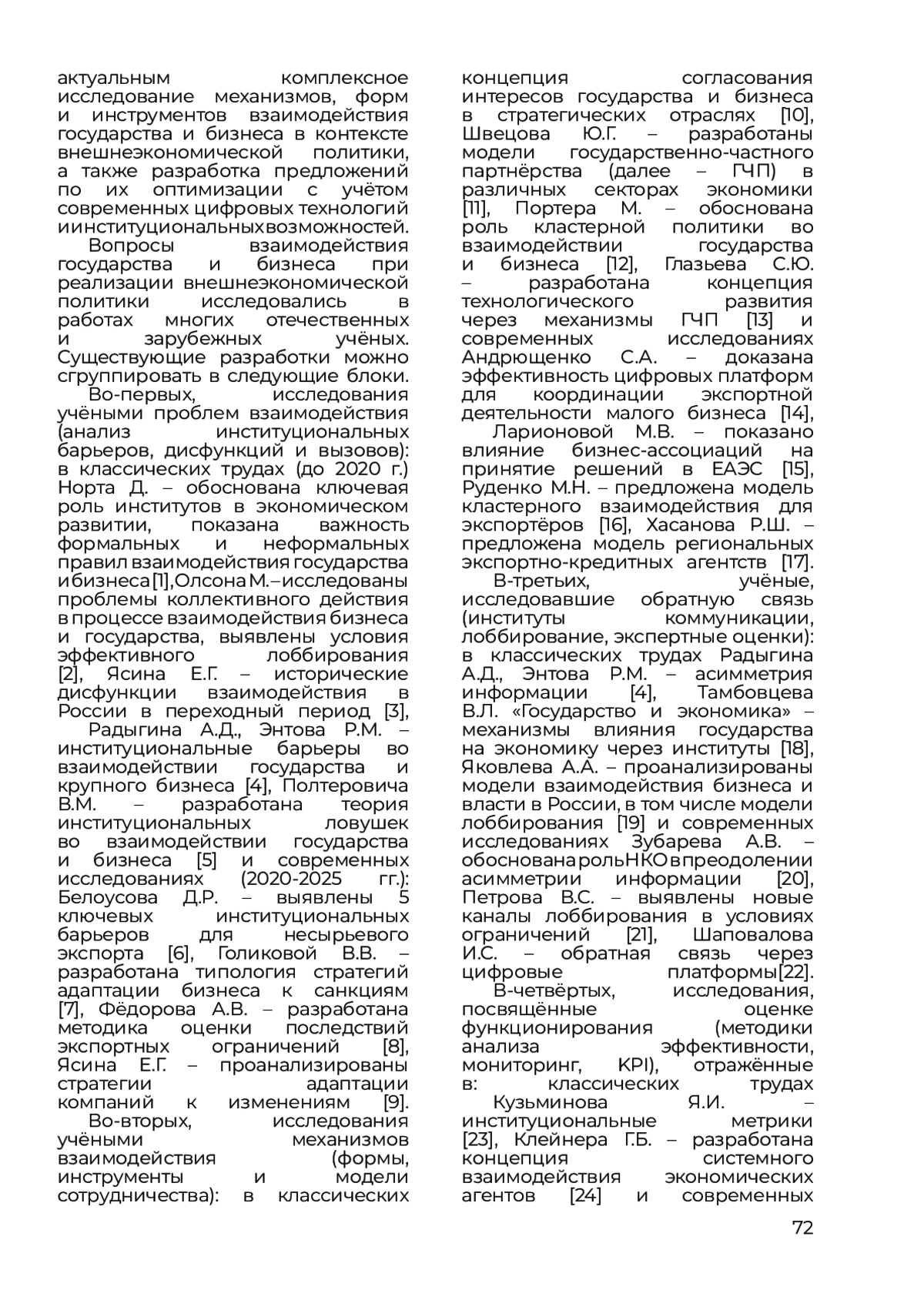 Статья: ВЗАИМОДЕЙСТВИЕ ГОСУДАРСТВА И БИЗНЕСА ПРИ РЕАЛИЗАЦИИ ВНЕШНЕЭКОНОМИЧЕСКОЙ ПОЛИТИКИ: МЕХАНИЗМЫ, ОБРАТНАЯ СВЯЗЬ, ОЦЕНКА ФУНКЦИОНИРОВАНИЯ (2025)
