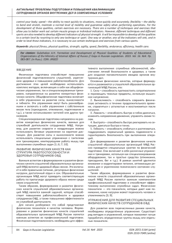 Статья: ФОРМИРОВАНИЕ И РАЗВИТИЕ ФИЗИЧЕСКИХ КАЧЕСТВ У СЛУШАТЕЛЕЙ ОБРАЗОВАТЕЛЬНЫХ ОРГАНИЗАЦИЙ МВД РОССИИ (2023)
