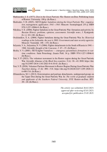 Исследуется вопрос организации и деятельности истребительных отрядов в Ростовской области в период Великой Отечественной войны: нормативная база их создания, специфика формирования и комплектования, уровень обеспечения вооружением и снаряжением, материально-техническое и финансовое снабжение. Вводится в научный оборот ряд архивных документов. Источниковой базой выступили как опубликованные в региональных сборниках документов, так и архивные материалы. Подчеркиваются различия между ополченческими частями и иными добровольческими структурами: у них была разная подчиненность. Сообщается, что сразу после начала войны в соответствии с решениями Советского правительства партийно-советское руководство Ростовской области быстро развернуло масштабную работу по формированию истребительных батальонов во всех городах и районах области. Показано, что в крайне сжатые сроки удалось создать довольно значительное количество данных отрядов, обеспечить их необходимыми кадрами рядового и командного состава, вооружением и снаряжением. Подчеркивается важная роль истребительных отрядов области в поддержании правопорядка, охране важных объектов промышленной и транспортной инфраструктуры в прифронтовой зоне и в оборонительных боях осени 1941 и лета 1942 годов на территории Ростовской области. Отмечается, что личный состав отрядов не был подготовлен к ведению боевых действий непосредственно на линии фронта, однако оказал неоценимую помощь в начальный период войны.