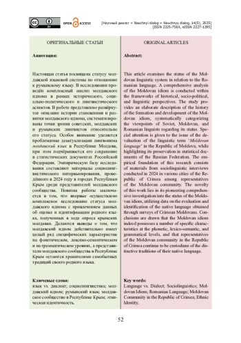 Ключевые фразы: язык vs диалект, СОЦИОЛИНГВИСТИКА, молдавский идиом, румынский язык, молдавское сообщество в республике крым, этническая идентичность