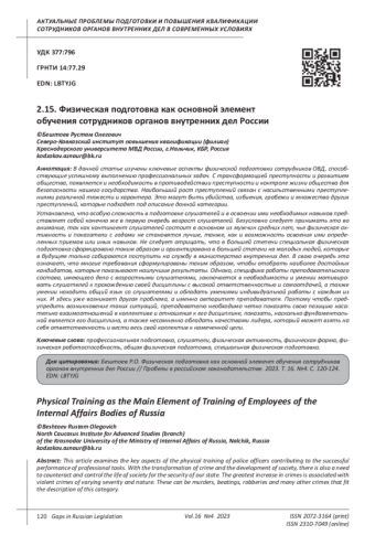 Статья: ФИЗИЧЕСКАЯ ПОДГОТОВКА КАК ОСНОВНОЙ ЭЛЕМЕНТ ОБУЧЕНИЯ СОТРУДНИКОВ ОРГАНОВ ВНУТРЕННИХ ДЕЛ РОССИИ (2023)