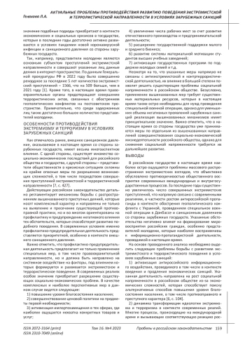 Действующее российское законодательство детально регламентирует механизмы борьбы с распространением вышеназванного преступных деяний, которые носят комплексный характер и направлены не только на выявление и пресечение существующей противоправной практики, но и во многом ориентированы на профилактику и предупреждение негативного влияния тех обстоятельств, которые способствуют развитию подобного поведения. В современных условиях именно профилактико-предупредительная деятельность представляется приоритетной, особенно в контексте внешнего санкционного давления.