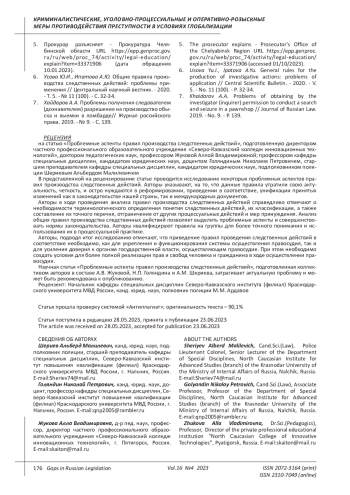 Статья: ПРОБЛЕМНЫЕ АСПЕКТЫ ПРАВИЛ ПРОИЗВОДСТВА СЛЕДСТВЕННЫХ ДЕЙСТВИЙ (2023)