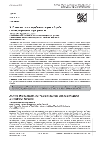 Статья: АНАЛИЗ ОПЫТА ЗАРУБЕЖНЫХ СТРАН В БОРЬБЕ С МЕЖДУНАРОДНЫМ ТЕРРОРИЗМОМ (2023)
