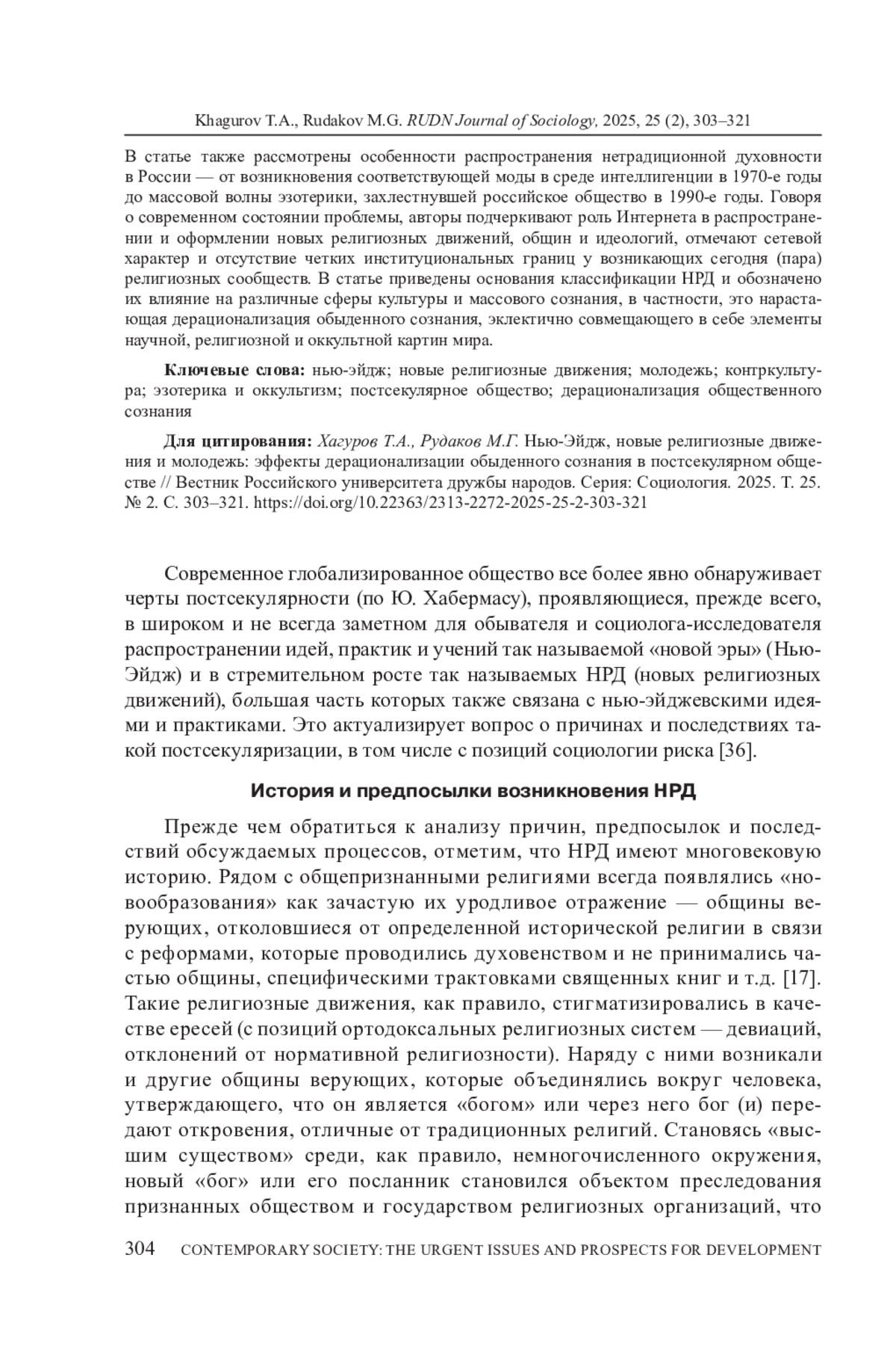 7. Данилов А.Н. Религиозное многообразие и новые религиозные движения в современном социуме // Вестник РУДН. Серия: Социология. 2024. Т. 24. № 3. EDN: FZKLOA