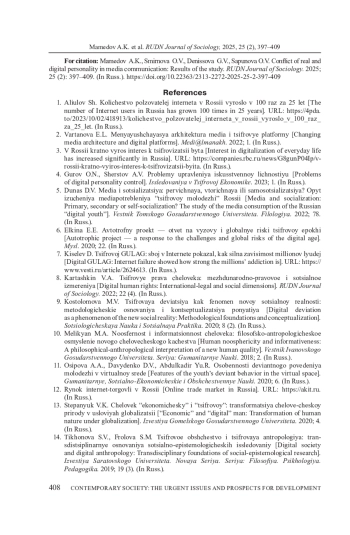 9. Костоломова М.В. Цифровая девиация как феномен новой социальной реальности: методологические основания и концептуализация понятия // Социологическая наука и социальная практика. 2020. Т. 8. № 2. EDN: UIEQQC