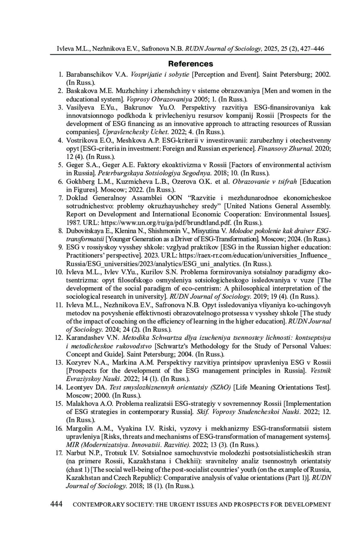 8. Дубовицкая Е., Кленина Н., Шишмонин В., Мисютина В. Молодое поколение как драйвер ESG-трансформации. М., 2024.