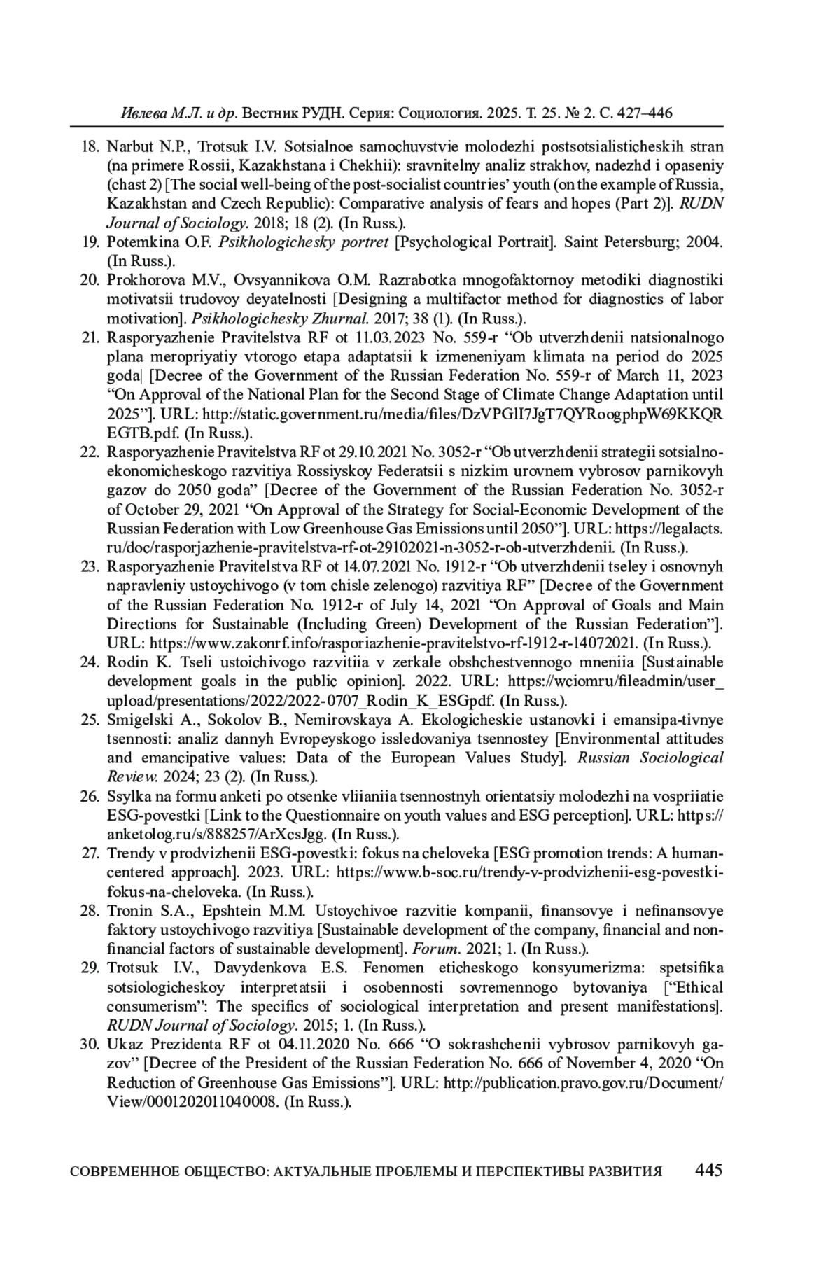 17. Нарбут Н.П., Троцук И.В. Социальное самочувствие молодежи постсоциалистических стран (на примере России, Казахстана и Чехии): сравнительный анализ ценностных ориентаций (часть 1) // Вестник РУДН. Серия: Социология. 2018. Т. 18. № 1.