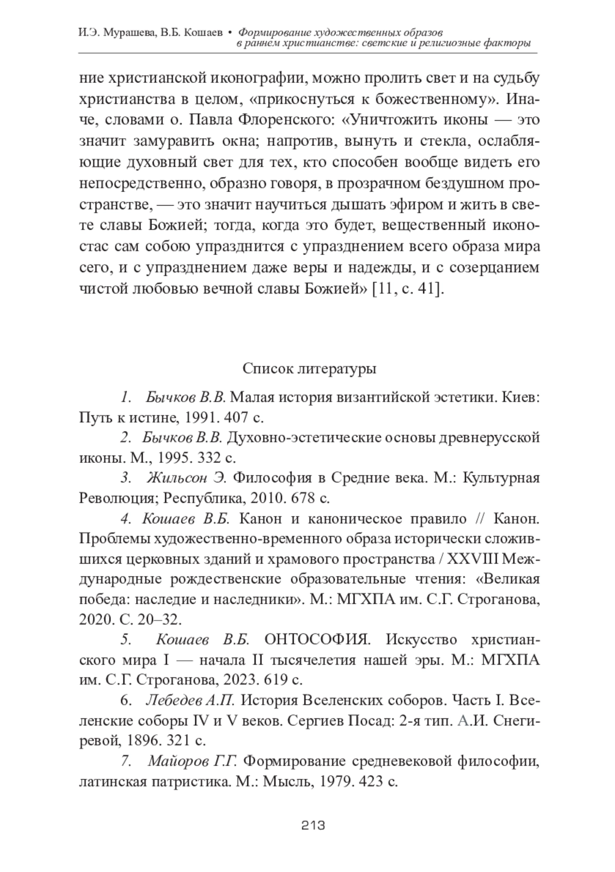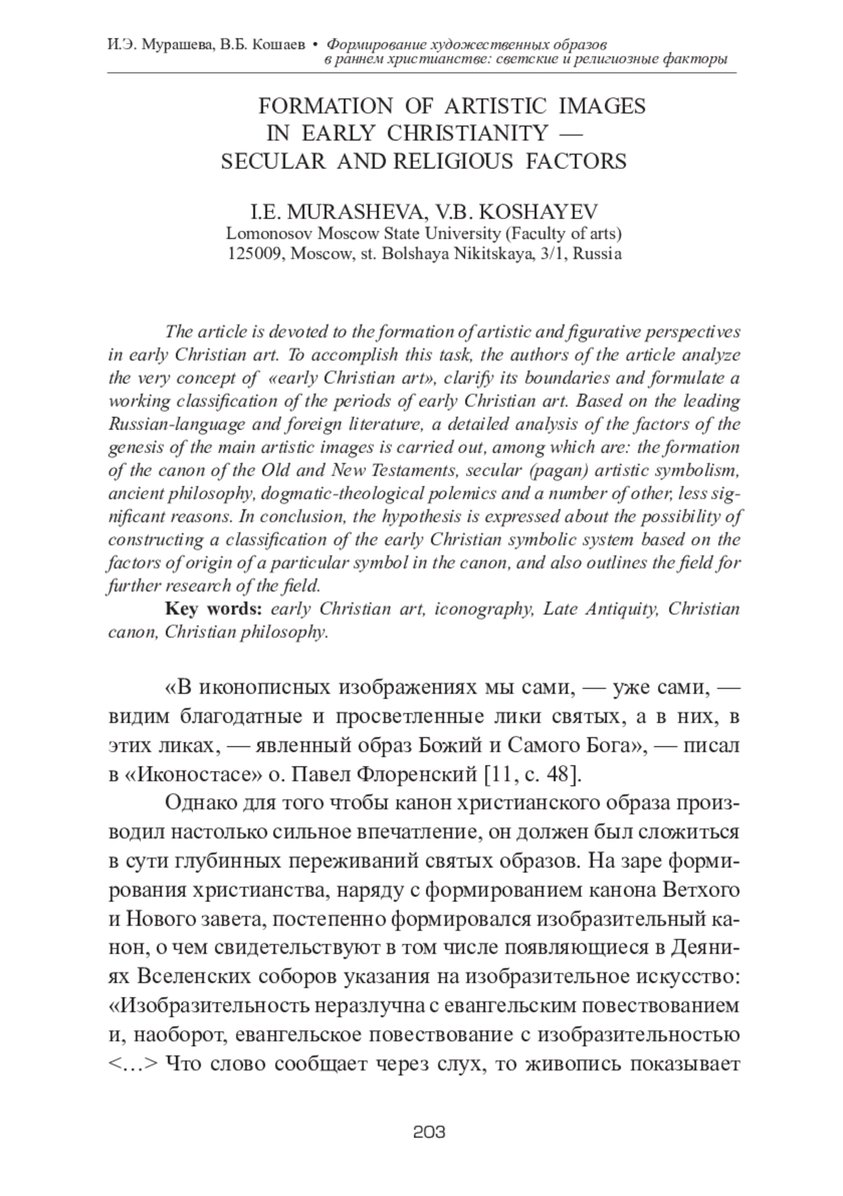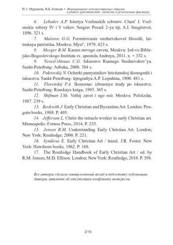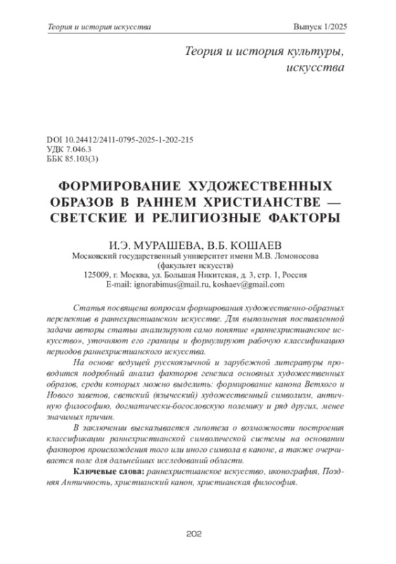 МУРАШЕВА И. Э., КОШАЕВ В. Б. ФОРМИРОВАНИЕ ХУДОЖЕСТВЕННЫХ ОБРАЗОВ В РАННЕМ ХРИСТИАНСТВЕ - СВЕТСКИЕ И РЕЛИГИОЗНЫЕ ФАКТОРЫ // ТЕОРИЯ И ИСТОРИЯ ИСКУССТВА. 2025. № 1