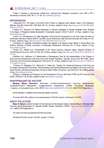 8. Чжан С. Вызовы и перспективы совместного строительства “Ледового шелкового пути” КНР и РФ // Экономика и политика. 2020. № 2. С. 31-36.