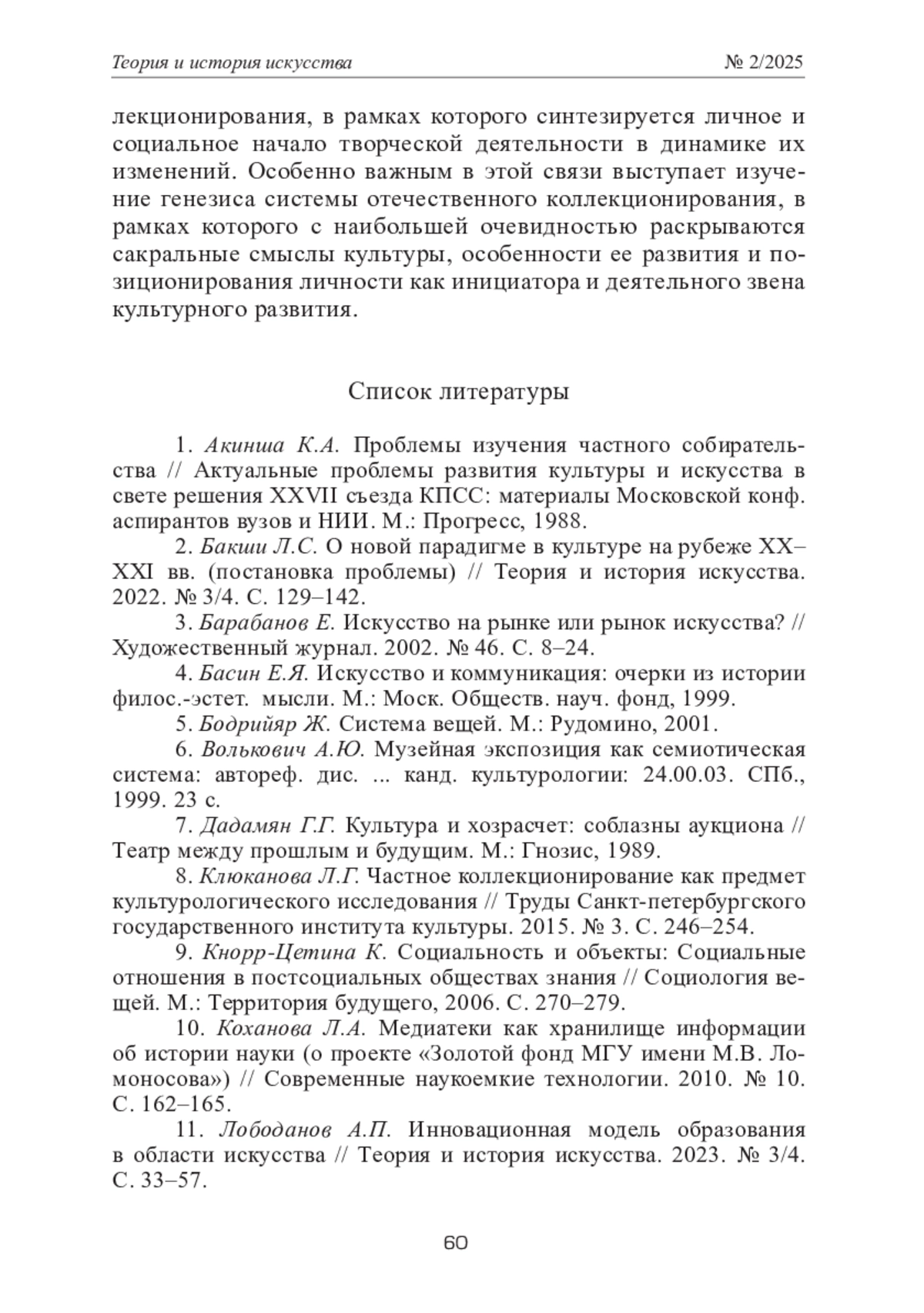 12. Макарова Е.А. Коллекционирование как социокультурный институт: дис.. канд. культурологии. Саранск, 2022. EDN: HDKEOS