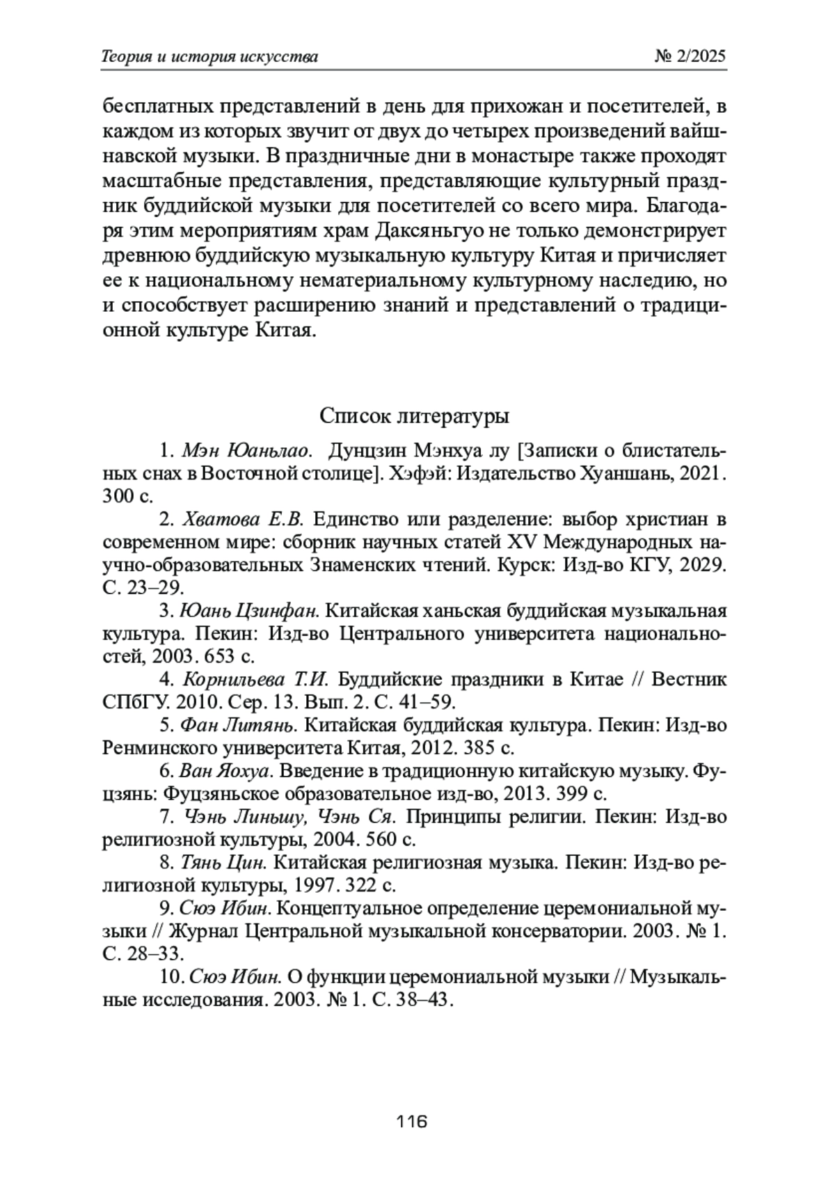 9. Сюэ Ибин. Концептуальное определение церемониальной музыки // Журнал Центральной музыкальной консерватории. 2003. № 1. С. 28-33.