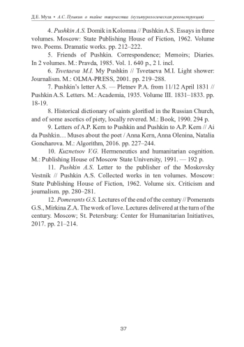 1. Франк С.Л. О задачах познания Пушкина // Пушкин в русской философской критике. Конец XIX - первая половина ХХ в. М.: Книга, 1990. С. 422-452.
