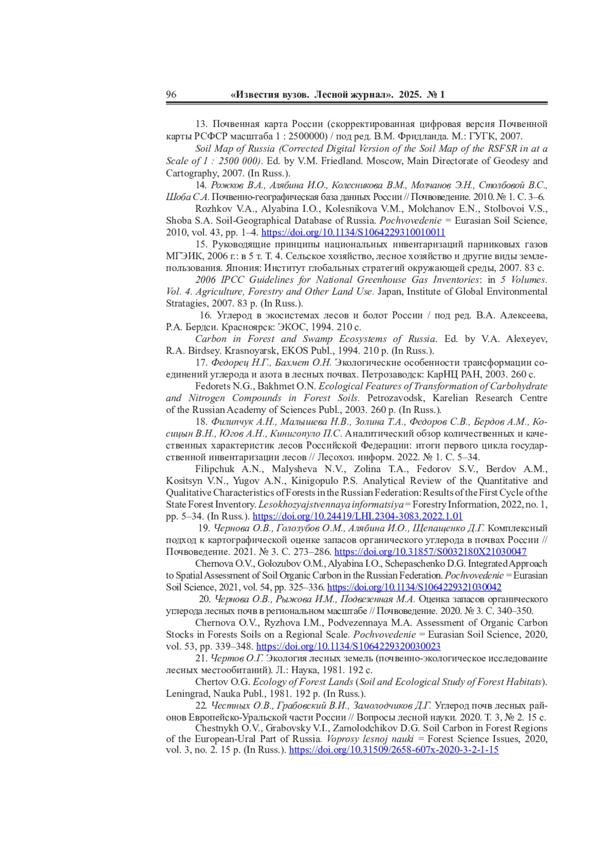25. Щепащенко Д.Г., Мухортова Л.В., Швиденко А.З., Ведрова Э.Ф. Запасы органического углерода в почвах России // Почвоведение. 2013. No 2. С. 123-132.