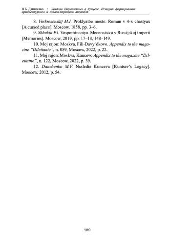 11. Мой район: Москва, Кунцево // Приложение к журналу “Дилетант” № 089. - М.: ООО “Образование - 21 век”, 2021. - C. 39.