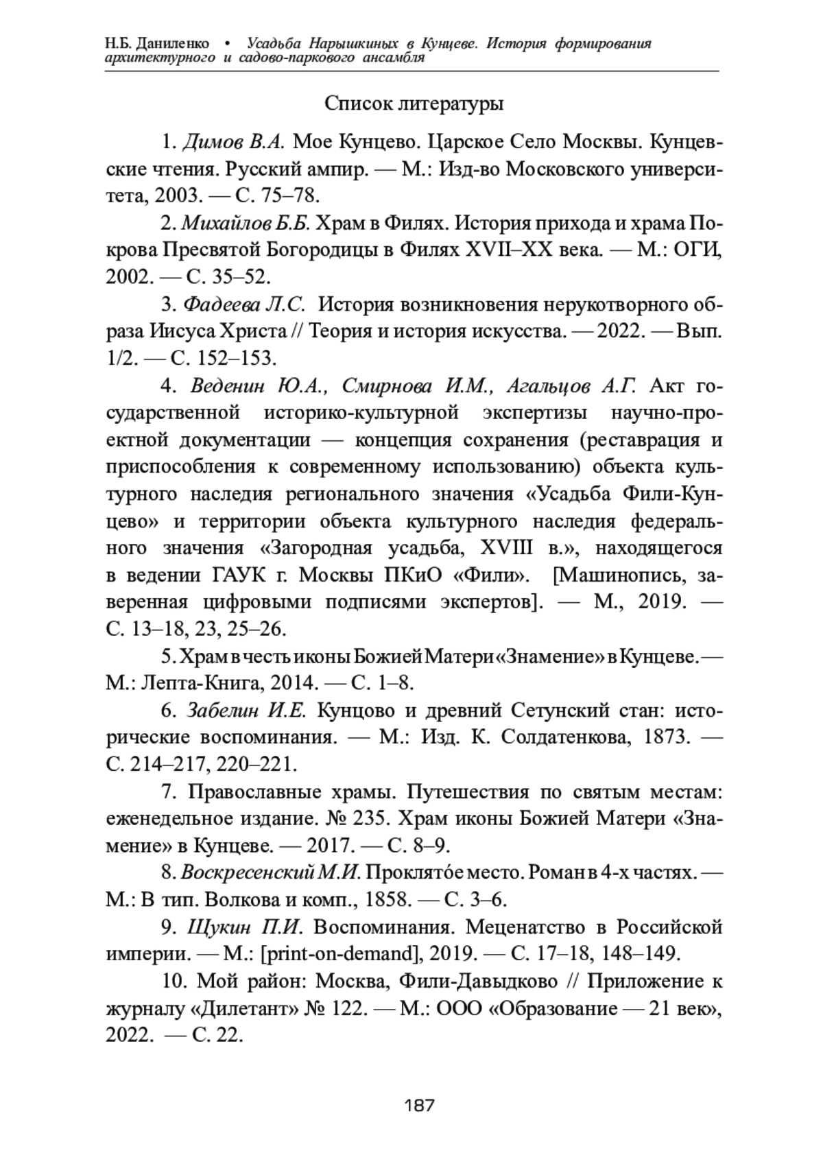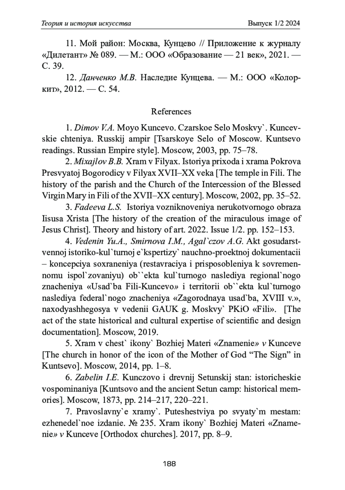 12. Данченко М.В. Наследие Кунцева. - М.: ООО “Колоркит”, 2012. - С. 54.