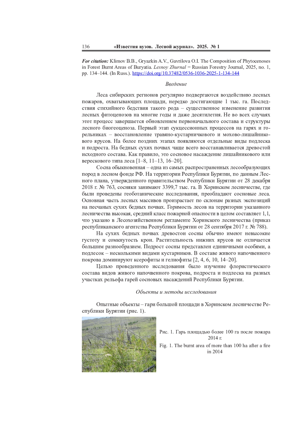 4. Гаврилова О.И., Колганов Е.С., Пак К.А. Оценка успешности самовозобновления сосны на гари // Лесотехн. журн. 2020. Т. 10, No 4 (40). С. 142-149.