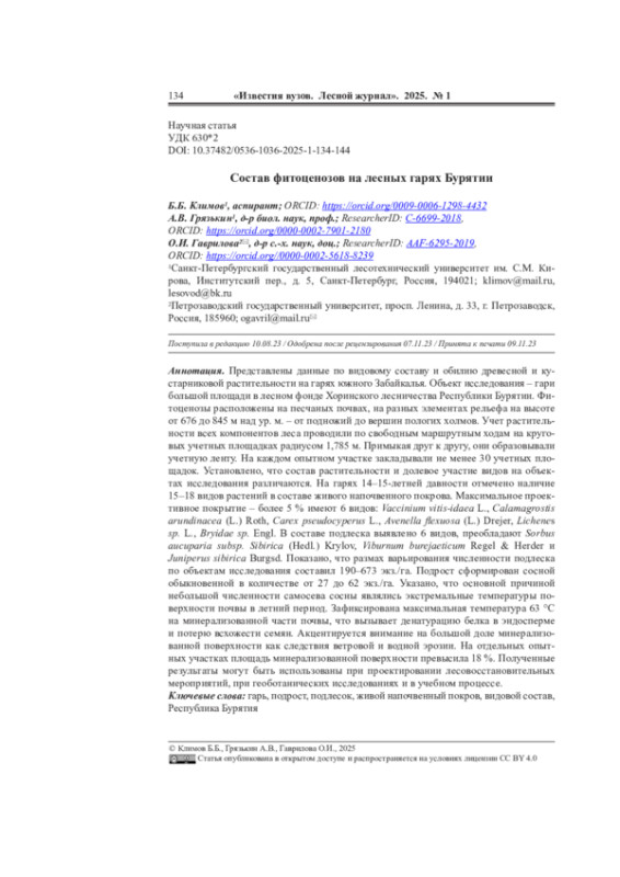 Bakhanova M.V., Kisova S.V., Konovalova E.V., Gladinov A.N., Sodboeva S.Ch. Artificial and Natural Reforestation of Burnt Areas Taking into Account the Peculiarities of Natural and Climatic Conditions of the Republic of Buryatia: Instruction Notes. Ulan-Ude, Buryat State Agricultural Academy named after V.R. Filippov, 2022. 47 p. (In Russ.).