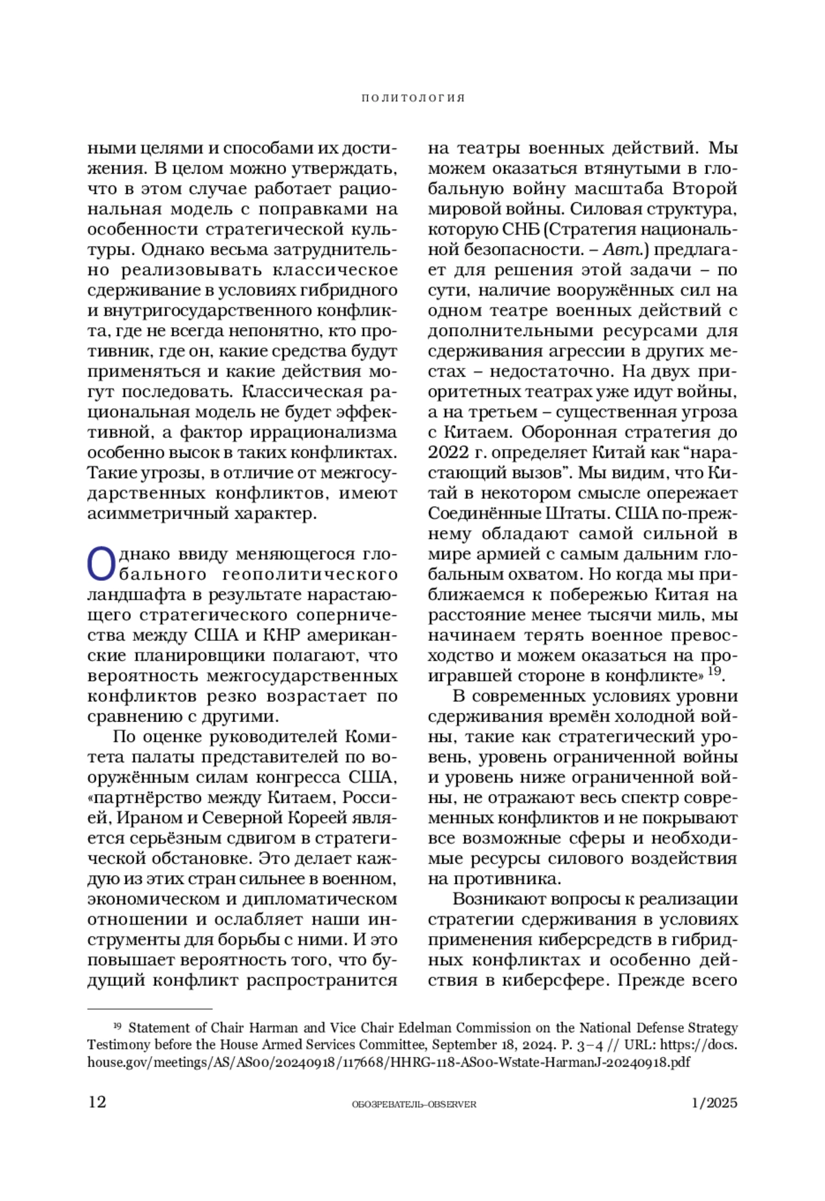 9. Statement of Chair Harman and Vice Chair Edelman Commission on the National Defense Strategy Testimony before the House Armed Services Committee, September 18, 2024. P. 3-4 // URL: https://docs.house.gov/meetings/AS/AS00/20240918/117668/HHRG-118-AS00-Wstate-HarmanJ-20240918.pdf