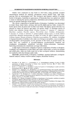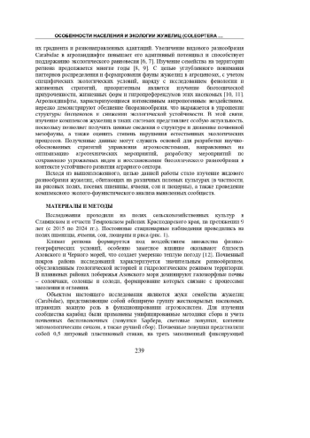 Статья: Особенности населения и экологии жужелиц (Coleoptera, Carabidae) агроэкосистем лиманно-плавневого комплекса Северо-Западного Кавказа (2025)