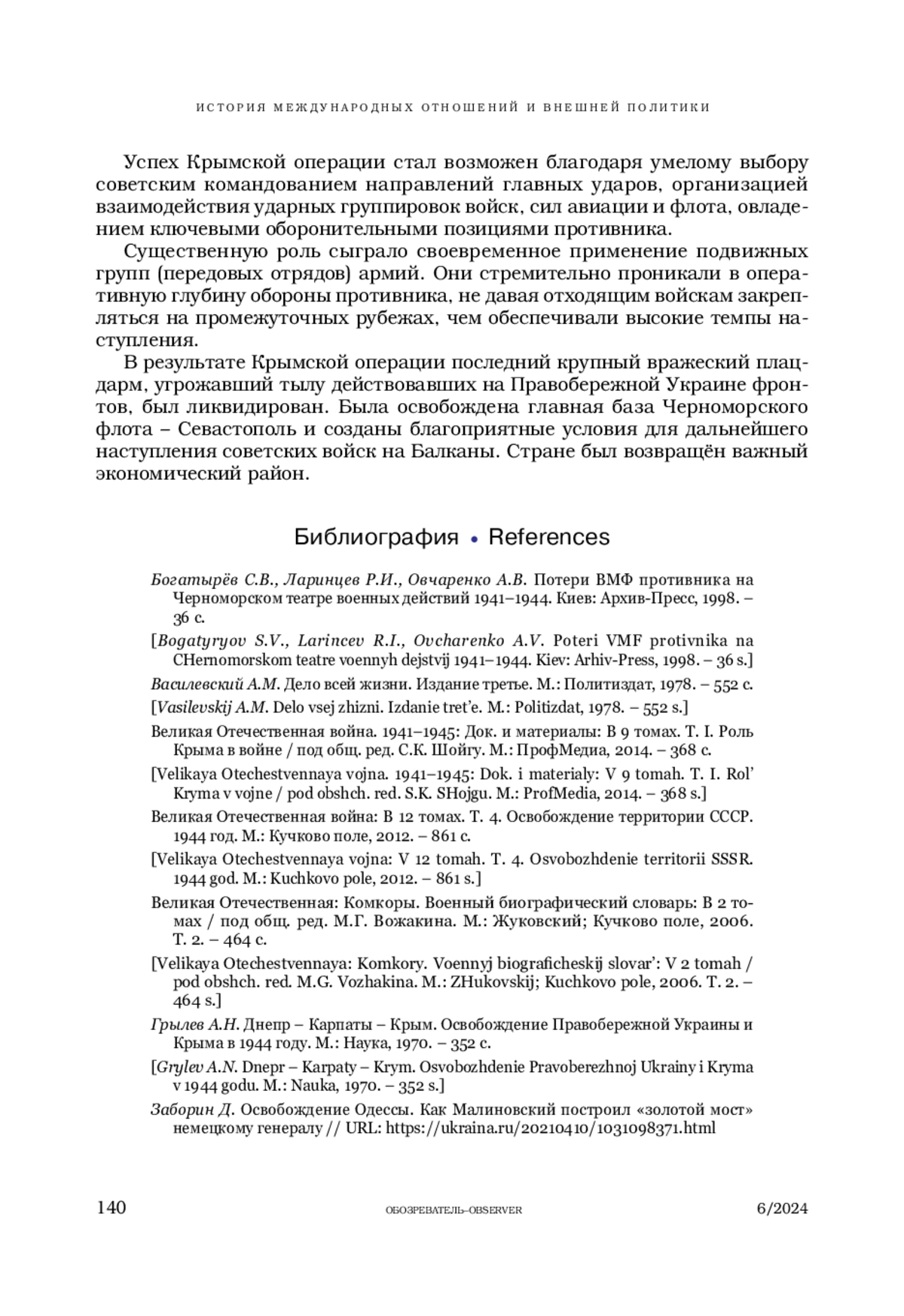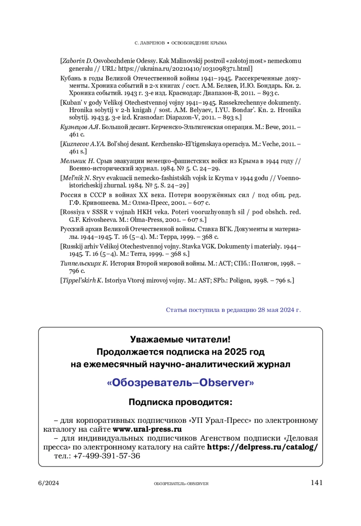 10. Мельник Н. Срыв эвакуации немецко-фашистских войск из Крыма в 1944 году // Военно-исторический журнал. 1984. № 5. С. 24-29.